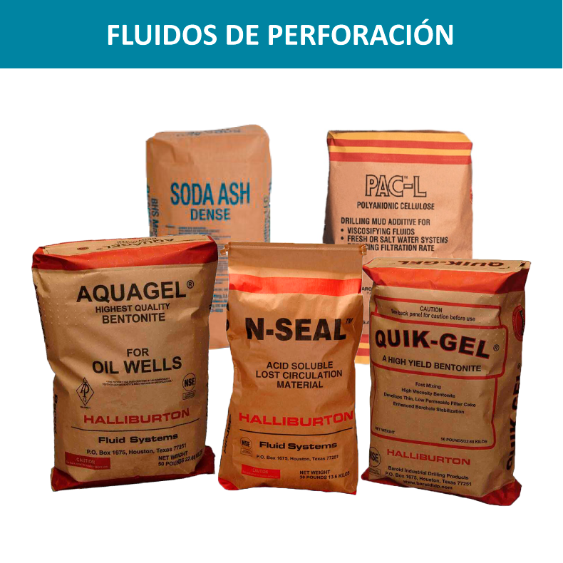 Contamos con bentonitas, elementos para control de filtración, agentes espumantes, estabilizadores, etc.