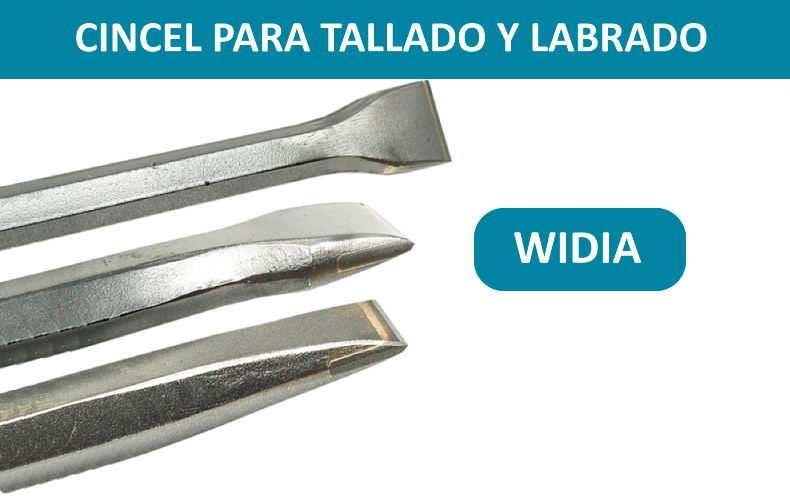 Las herramientas para tallar piedra con placa o con punta de widia, poseen un excelente rendimiento y están especialmente indicados para los trabajos de talla, labrado y abujardado, considerándose útiles imprescindibles para efectuar ciertas tareas de cantería y escultura.